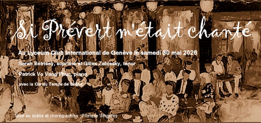 Ne manquez pas notre prochain spectacle du samedi 30 mai 2026 SI PRÉVERT M’ÉTAIT CHANTÉ Voyage poétique et lyrique Un voyage dans le Paris de l’après-guerre, emportés par l’univers de Kosma et Prévert… Voici, mis en scène, les chansons de deux génies des mots, du cinéma et de la chanson: Jacques Prévert et Joseph Kosma […]